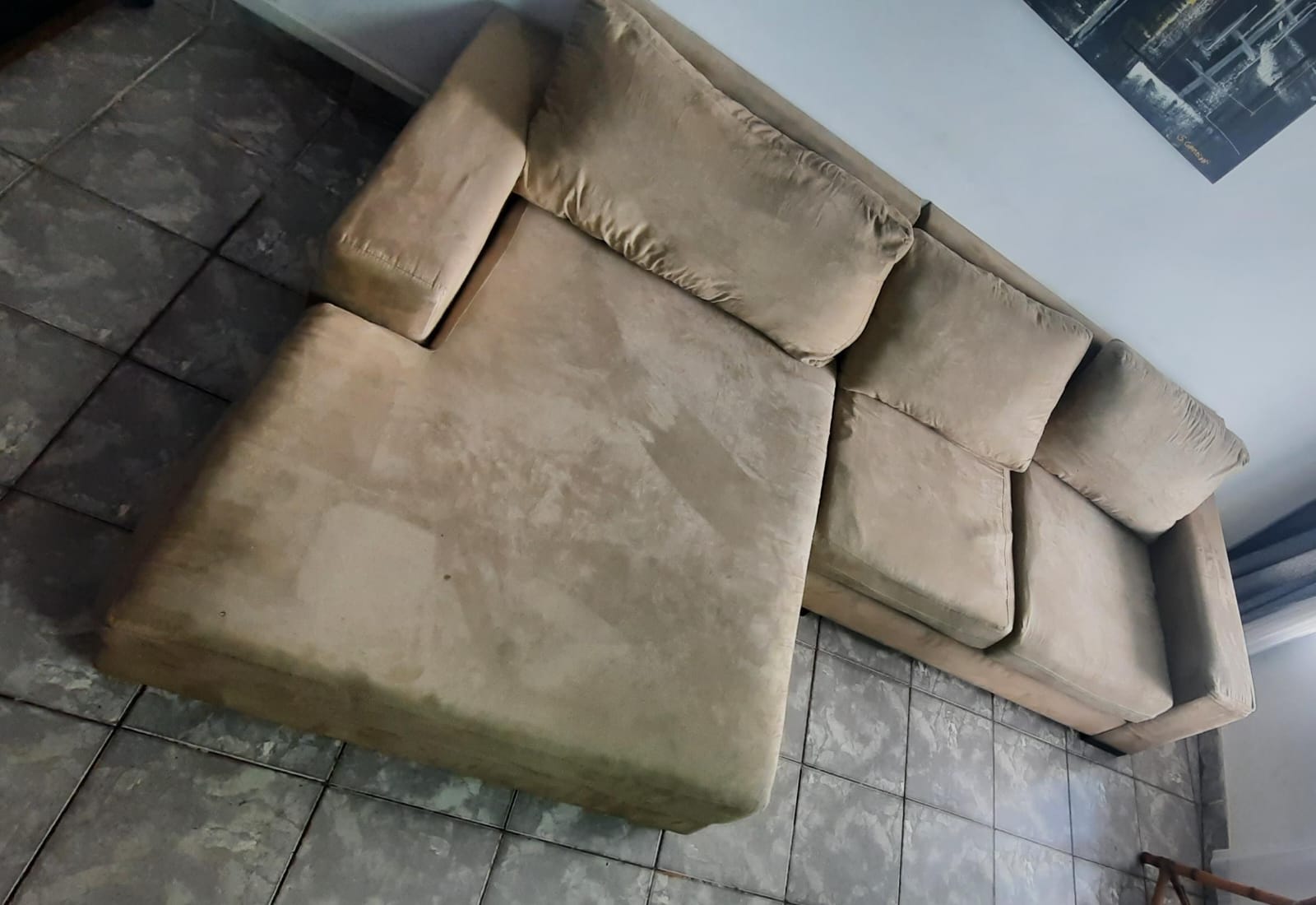 - sofá em tecido suede